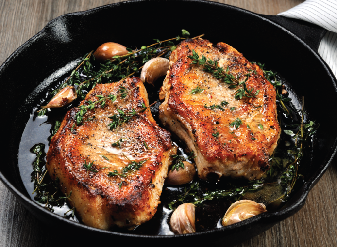 1. The easiest way to cook pork steaks is in a hot pan or on the BBQ. Get the pan nice and hot, and add a small glug of olive oil. Season your steaks with a little salt and pepper.